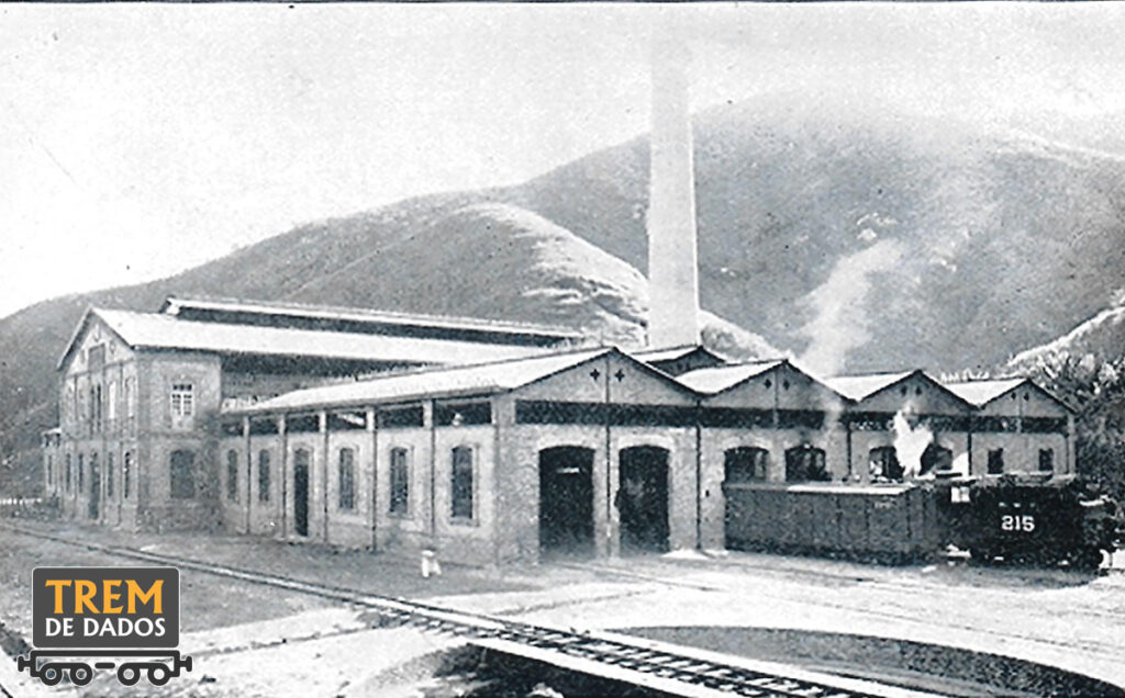 Imagem mostrando o depósito e oficina de material rodante da Rede Mineira de Viação em Barra do Piraí.