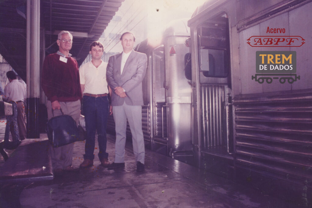 DESCRIÇÃO: Imagem o saudoso Luis Octávio de Oliveira, fundador de presidente da Associação Fluminense de Preservação Ferroviária – AFPF, aguardando o embarque em uma automotriz, na estação Dom Pedro II/Central do Brasil, rumo à Itacuruçá para a inauguração do CEFEC, na região da Costa Verde.