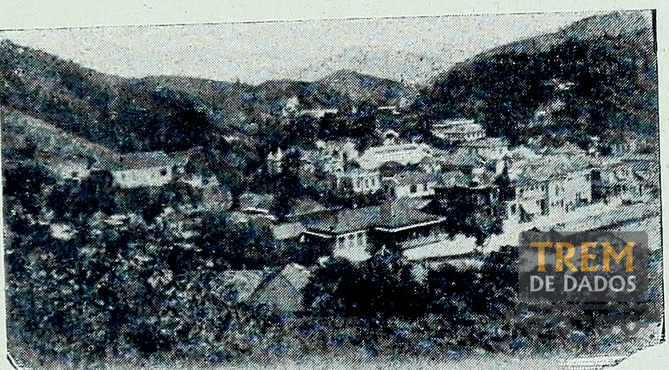 DESCRIÇÃO: Recorte do Guia da Cidade do Rio de Janeiro, de 1905, mostrando parte da estação de Petrópolis, da Estrada de Ferro Príncipe do Grão-Pará, além dos prédios do Centro da cidade, na época.