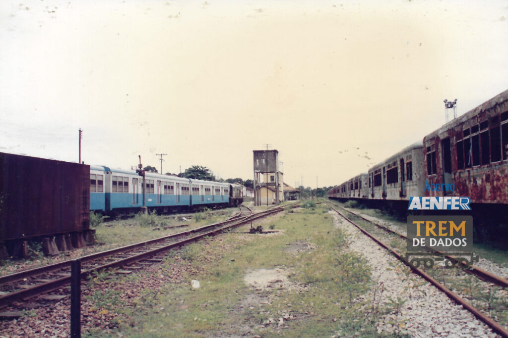 Na foto produzida por Benício Guimarães em 1996, pode-se ver à esquerda um trem de subúrbio que fazia o trajeto entre Visconde de Itaboraí e Santana do Maruí, em Niterói, e à direita uma fila de 27 carros “da antiga eletrificação” que iriam ser sucateados em 2 de dezembro de 1996. Estes carros de passageiros, aparentemente, eram os carros “Série 100” da Estrada de Ferro Central do Brasil, eletrificados, e que foram rebitolados (conversão da bitola larga 1600mm para bitola métrica 1000mm) para circular tracionados por locomotivas diesel nos trechos da Leopoldina.