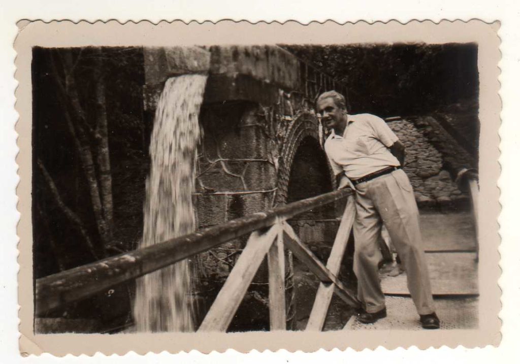 Nesta imagem do acervo pessoal de Hugo Salomão pode-se ver um membro da família posando ao lado das instalações de abastecimento de água deste complexo de estruturas que foram construídas com a ajuda da Estrada de Ferro Rio d'Ouro, ferrovia que posteriormente auxiliou na manutenção das adutoras de água captada de mananciais nas serras nos arredores da Baixada Fluminense.
