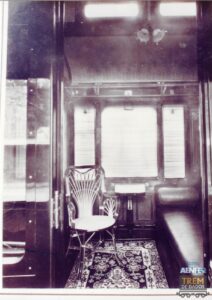 DESCRIÇÃO: Imagem mostrando o interior de um carro de luxo da Estrada de Ferro Central do Brasil, fabricado pela indústria Ringhoffer, da Áustria/Hungria