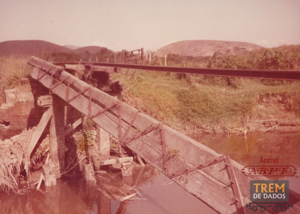 DESCRIÇÃO: rara imagem da ponte (neste caso, suas ruínas) da Estrada de Ferro Mauá sobre o Rio Inhomirim.